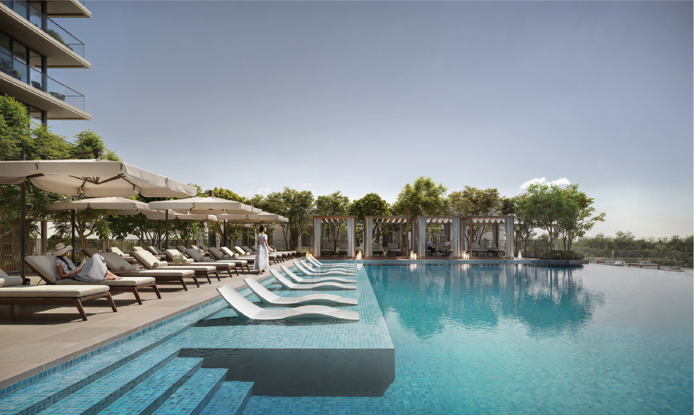 住宅設計靈感取自當代簡約美學,建築外立面以樸實的中性色調為主,與周圍綠地完美融合。室內空間強調實用與質感並重,開放式格局搭配高級精緻裝潢,打造舒適且風格鮮明的現代居所。每個住宅單位皆配備現代化廚房與豪華衛浴,無論自住或投資,皆展現出色性價比。